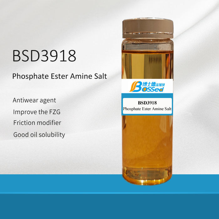 BSD3918 is a light yellow transparent liquid, a phosphorus nitrogen agent synthesized from phosphate esters and long-chain fatty amines. It is an ashless multifunctional additive with extreme pressure, wear resistance, and rust prevention properties. It can be used for industrial oils such as Gear oil, hydraulic oil, compressor oil, metalworking oil, etc.